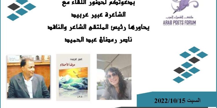 يستضيف ملتقى الشعراء العرب الشاعرة اللبنانية عبير عربيد اليوم السبت 15/10/2022 وذلك في تمام تمام الساعة الثامنة مساءٌ بتوقيت بيروت السابعة بتوقيت القاهرة