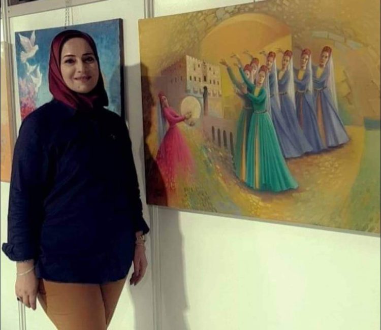 الفنانة التشكيلية أمينة جويدمشاركتي بلوحة تمثل الفلكلور الحلبي السوري قلعة حلب مع فلكلور رقصة السماح الصوفية ضمن معرض الكتاب العربي في اسطنبول الذي أقيم بتاريخ 1\10\2022 لغاية 9\10\2022