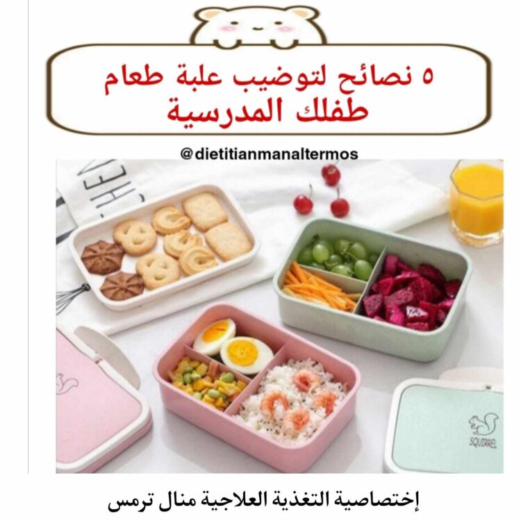 ثانياً : التنسيق الجيد :تأكدي من المدرسة من عدد الفرص وذلك لكي تنسقي العلبة على أساس عدد وجبات الطعام ولكي لا تبالغي في الكمية التي تضعينها فمثلا إذا كان هناك فرصتان يكفي أن تضعي سندويش صحي مع حصة فاكهة وأي نوع من السناك الصحي للفرصة الثانية.