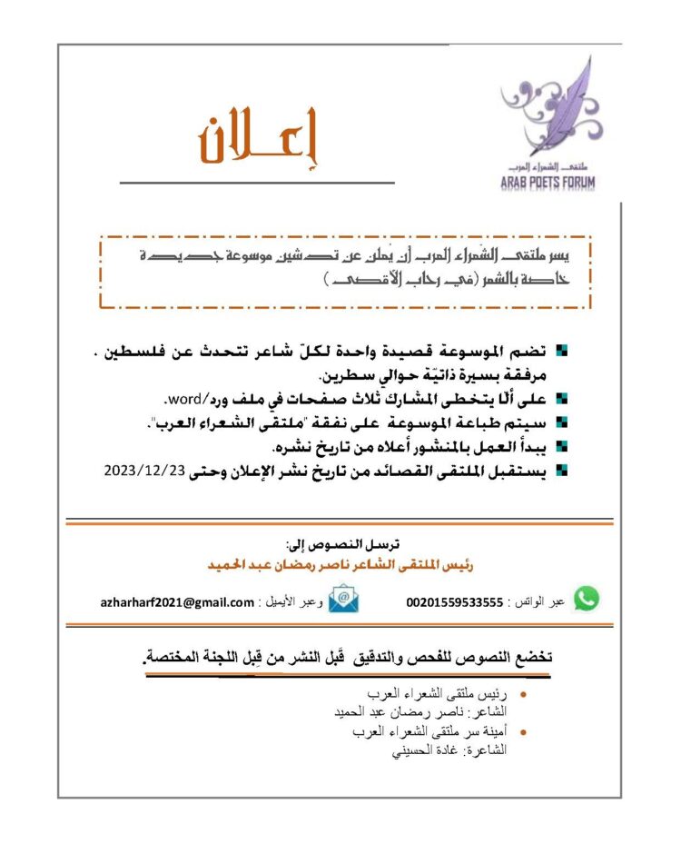 يستقبل الملّتقى القصائد من تاريخ نشر الإعلان وحتى 23/12