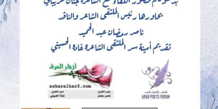 بعد توقف مؤقت خلال شهر رمضان المبارك، تعود مجلة أزهار الحرف لاستئناف نشاطها في البث المباشر بعد عيد الفطر، مقدمة لجمهورها لقاءات أدبية وشعرية متميزة. وفي هذا الإطار، يستضيف ملتقى الشعراء العرب الشاعرة اللبنانية جنان خريباني، يوم السبت الموافق 5/4/2025، في تمام الساعة السابعة مساءً بتوقيت لبنان السادسة بتوقيت القاهرة .