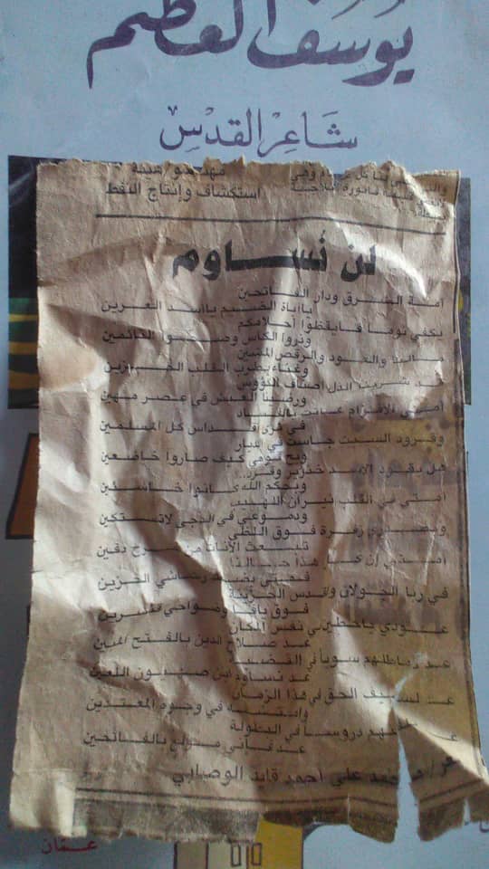 قصيدة كتبتها قبل أكثر من ثلاثة غقود. حينها كنتُ طالباً في المرحلة الثانوية ..نشرت وقتها في صحيفة ( الثورة) الناطقة بسم الحكومة في اليمن
