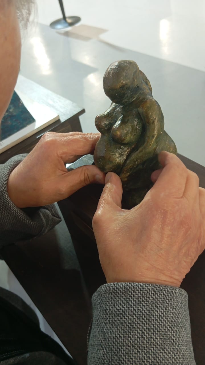 لقد غمرني الفخر والرهبة وأنا أراقب صديقي العزيز، الأستاذ رشيد الرفاعي، رئيس الجمعية المغربية لفاقدي البصر، وهو يتفقد منحوتتي (فينوس). في تلك اللحظة، لم يكن رشيد يلمس الطين أو المادة فحسب، بل كان يقرأ بعمق الأنامل لغة المنحنيات والكتل التي صغتها. كانت لحظات صامتة لكنها مفعمة بالضجيج الشعوري، حيث تحولت “فينوس” من قطعة فنية بصرية إلى تجربة حسية متكاملة.