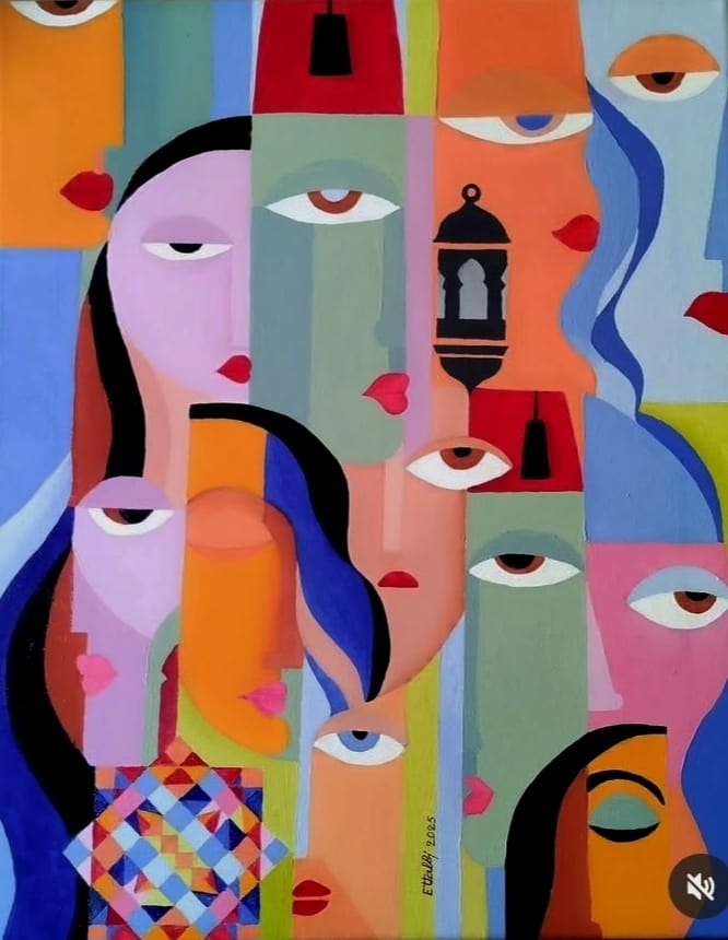 كل عين في اللوحة” المراقب الصامت” تمثل زاوية رؤية مختلفة للعالم. الصمت هنا يعكس حالة من “الذهول” أو “الاستيعاب العميق” لتعقيدات الحياة المعاصرة.