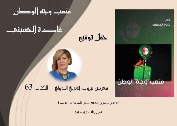 حفل توقيع للشاعرة اللبنانية :غادة الحسيني (متعب وجه الوطن)