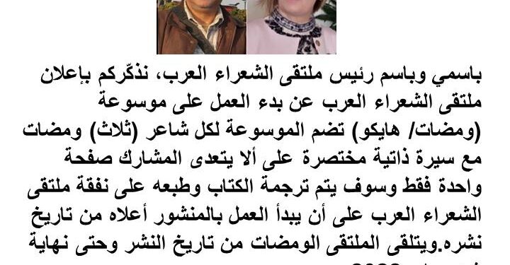 يدشن ملتقى الشعراء العرب مشروعه الجديد