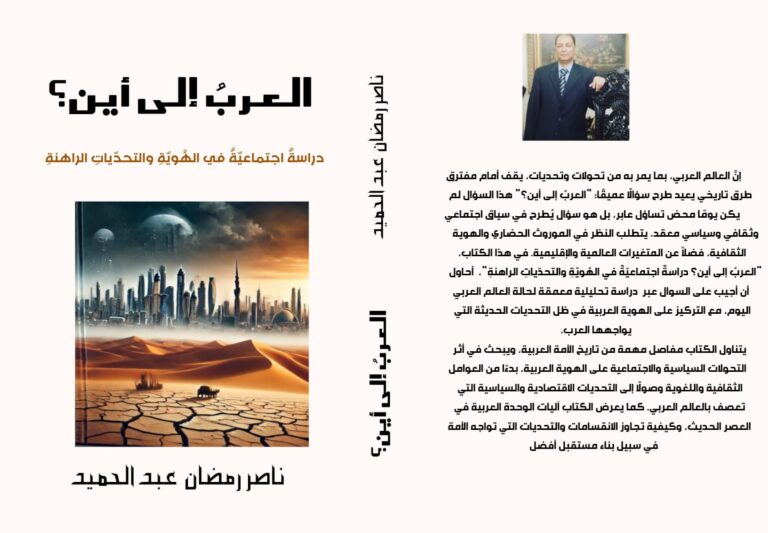 صَدَرَ حديثًا عن دار إسكرايب للنشر والتوزيع بالقاهرة، بالتعاون مع ملتقى الشعراء العرب، كتاب “العرب إلى أين؟”، وهو دراسة اجتماعية تتناول الهوية والتحديات الراهنة. قام بتصميم غلاف الكتاب الفنانة اللبنانية ليلى بيز المشغرية، وتولى المراجعة اللغوية سيد غلاب. يتطرق الكتاب…