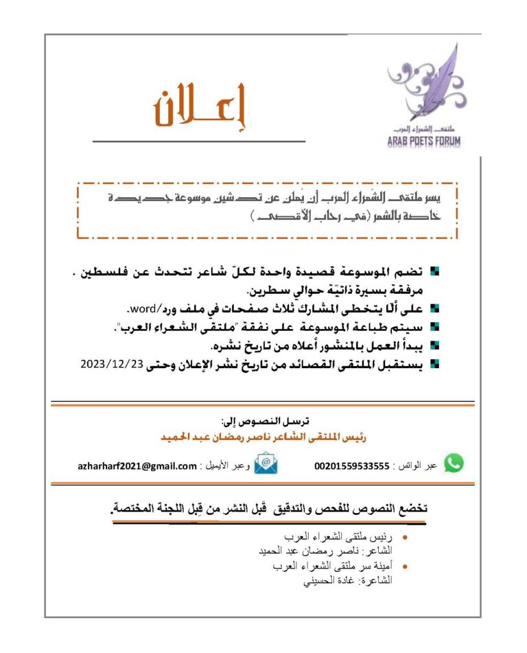 بمناسبة مرور عام على وفاة المرحوم الحاج/ حسين علي بيز (ابو عيسى )ووفاءً وتخليداً لذكراهصدر حديثا للأديبة اللبنانية ليلى بيز المشغرية عن دار اسكرايب للنشر والتوزيع بالقاهرة وبالتعاون مع ملتقى الشعراء العرب كتاب(لن يموت الحب)قدم للكتاب الشاعر والناقد المصري ناصر…