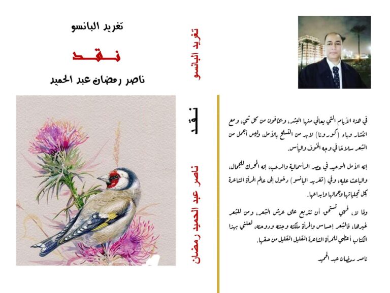 كتبت عبير عربيد من بيروت.عن دار اسكرايب للنشر والتوزيع بالقاهرةصدر للشاعر المصري :ناصر رمضان عبد الحميدتغريد البانسونقدوهو عبارة دراسات نقدية لمجموعة من الشاعرات بالوطن العربي وهن كالتالي :منار السماك البحرين منى دوغان جمال الدينلبنان باريس بلقيس بابوالمغربأميرة عيسى لبنان أسترالياناهد…