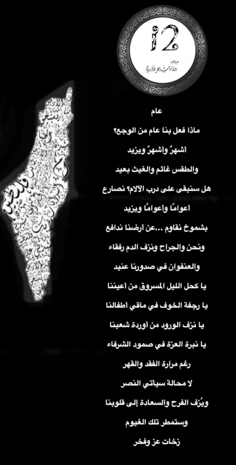 (همسٌ فلسطيني)نهى عودة29 ننكبُّ على دَثرِ الذكرياتبين نكبةٍ ولجوءيهمسُ الفلسطينيُّ:لا يليق بك أيّها المُبْعدأن تجمع شجَنَك هنا أو هناكشوارِعُك مَنكوبةٌمَلامحُك يغزوها الوَهنجُرحك لا يلتئمروحك مُهدَّدة بالقتلوأيُّ قتلٍالقتلُ المُنمَّقُشهقةٌ شهقةٌفقد يَتلوه فقدٌتُخبِرك الجدرانُبألَّا تجمع صُوَرَك ولا أوْراقكلا تُغنِّي لِزُقاقٍلا تَمرّ مِن…