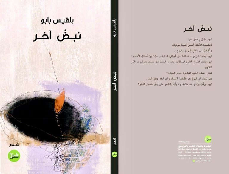 كتبت غادة الحسيني من بيروت صدر حديثا عن دار خطوط وظلال للنشر والتوزيع ديوان شعر “نبض آخر ” للدكتورة بلقيس بابو ، و سوف يتم التوقيع يوم السبت الموافق 19 أبريل الساعة الثالثة بعد الزوال برواق الدار C17.والدكتورة بلقيس بابو…